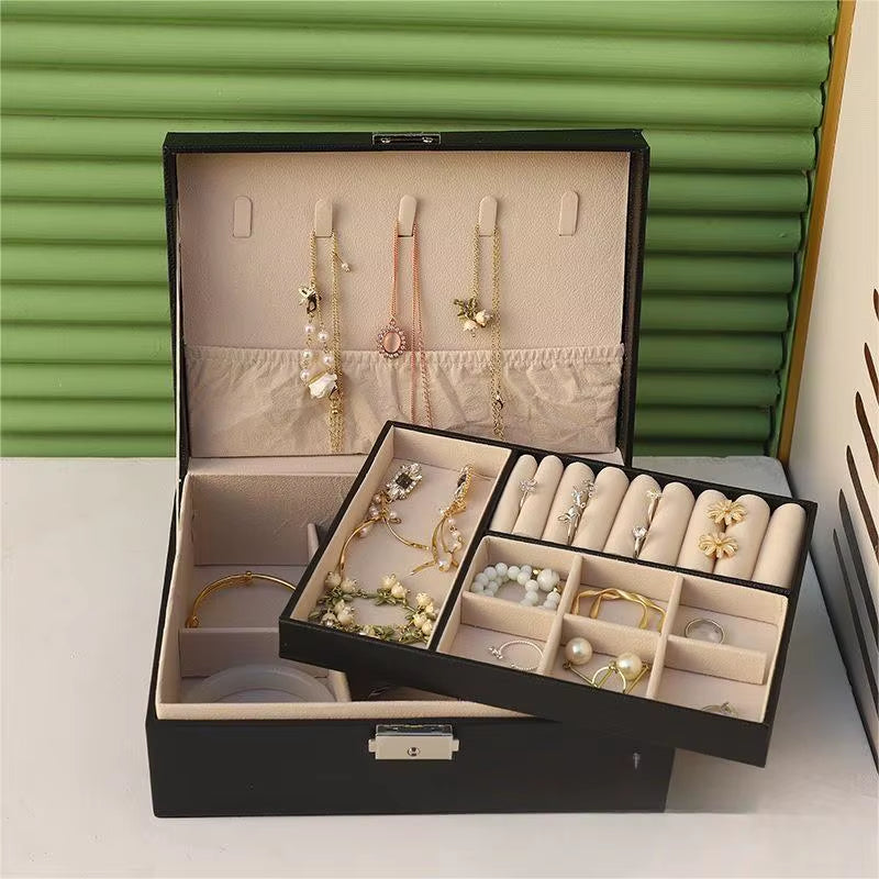Keep your jewelry beautifully organized with the Nexora LuxeCase™ Double-Layer Jewelry Storage Box, designed for both style and practicality. Its structured double-layer interior gives each piece—rings, earrings, bracelets, necklaces, and keepsakes—its own dedicated space, preventing tangles and scratches while keeping everything easy to see and access. Perfect for home use, travel, or displaying your collection, it brings both elegance and convenience to your daily routine.